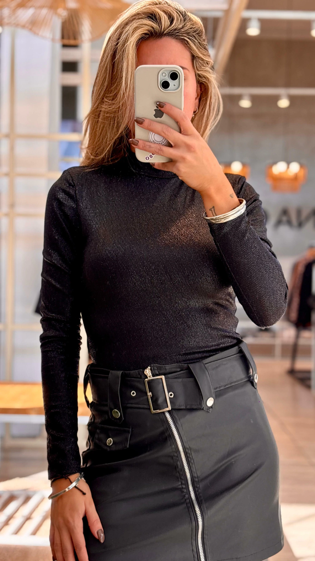 Disponible en talles S, M, L y XL, este body confeccionado en tela lurex es la prenda perfecta para destacar tu figura con un toque de brillo y sofisticación.