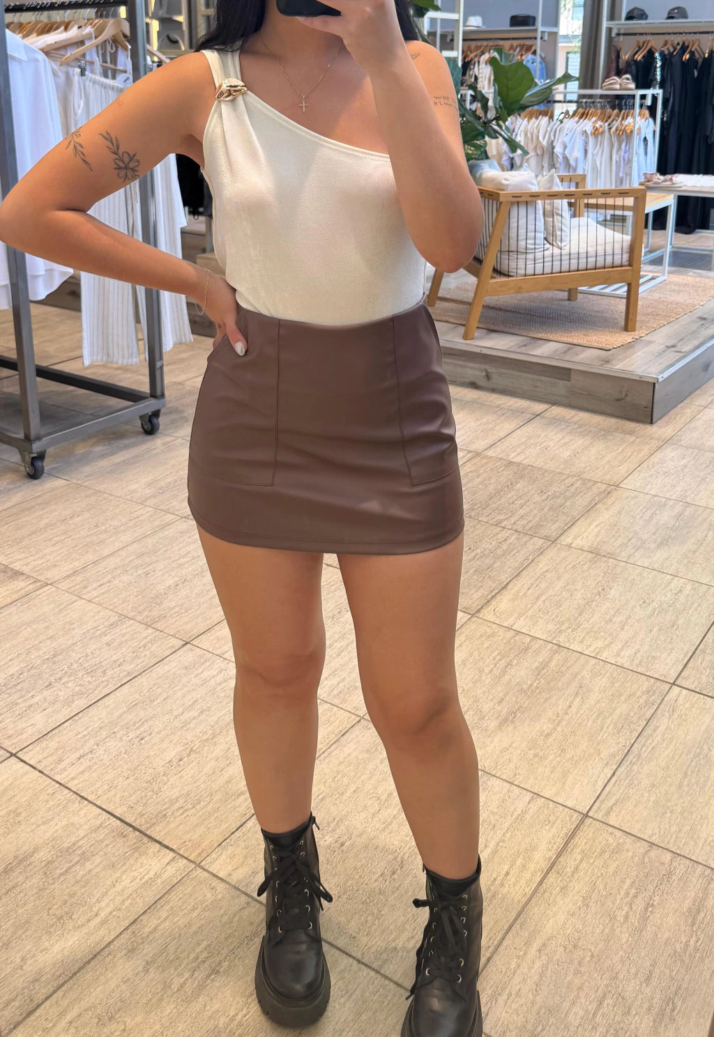 Pollera Cuerina (PO158) ¡Sumá un toque audaz y moderno a tu guardarropa con nuestra Pollera Cuerina! Esta prenda destaca por su diseño sofisticado y textura única que te harán brillar en cualquier ocasión.