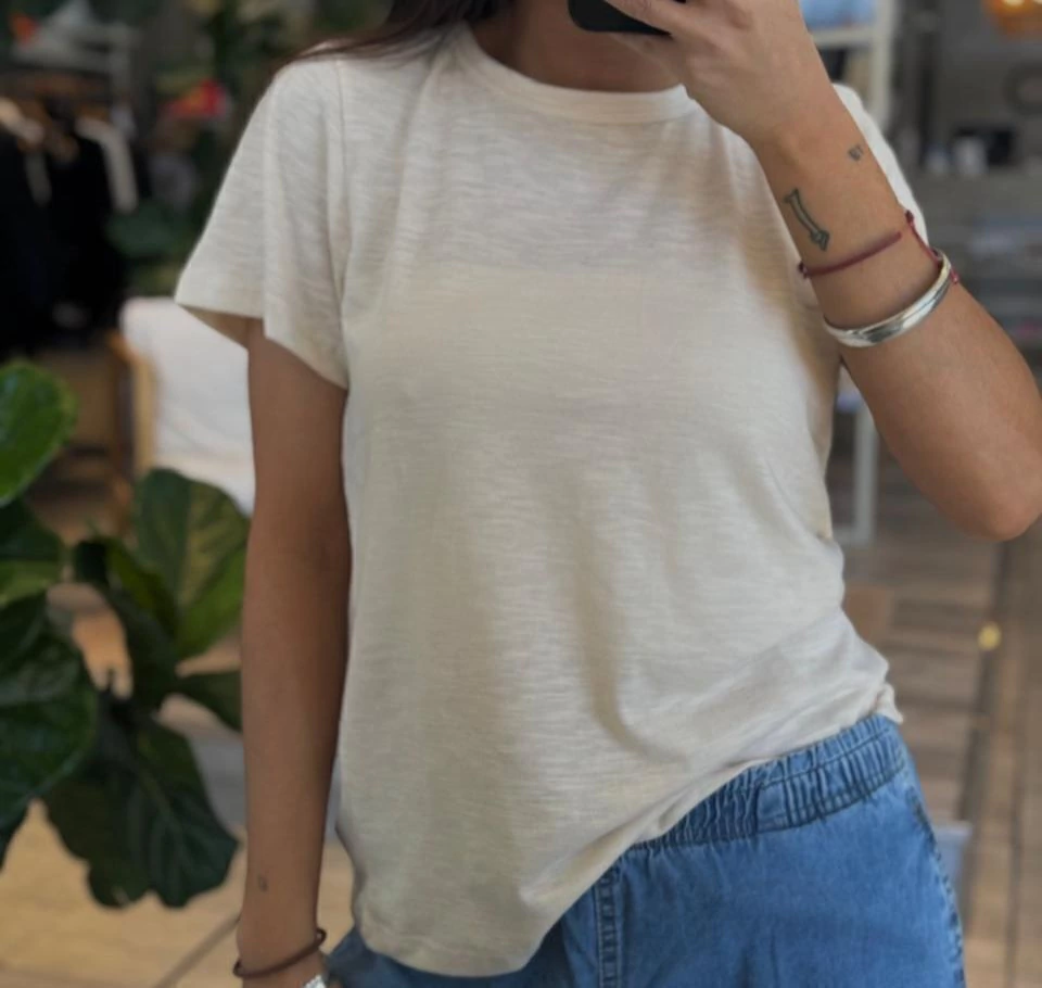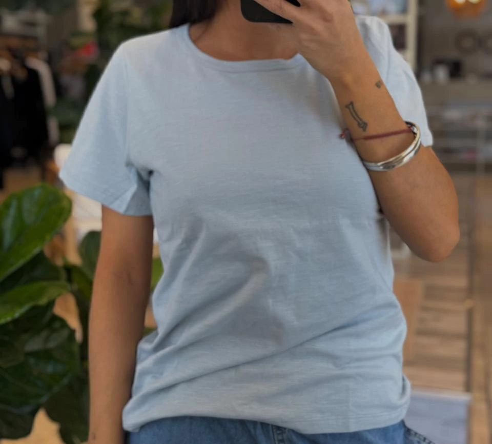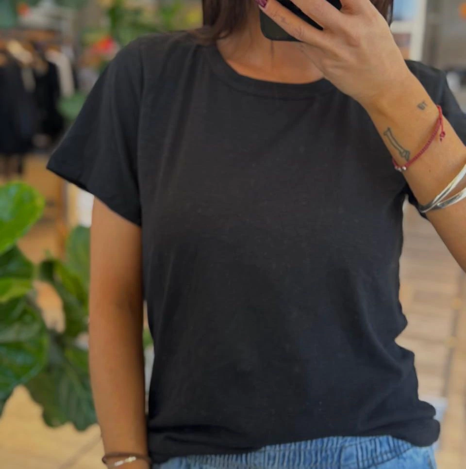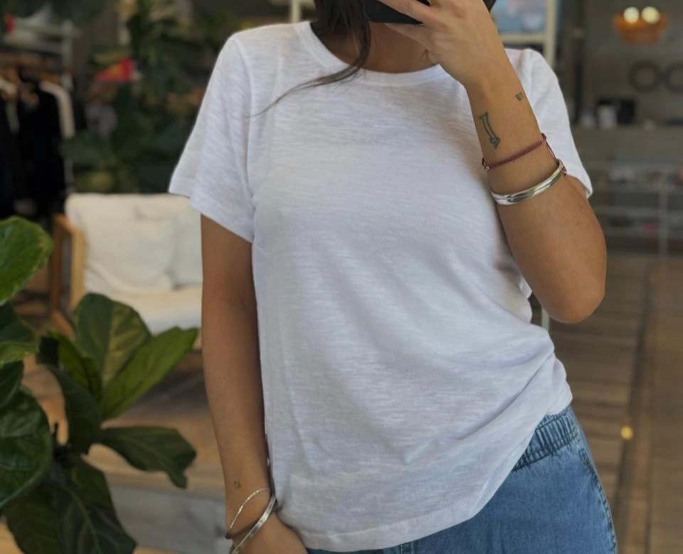 Esta remera combina un diseño clásico con un corte que realza tu figura de manera natural. Ideal para usar sola o combinar con diferentes prendas y accesorios.