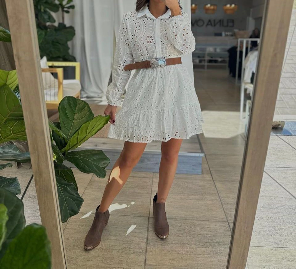 Vestido Broderi con Botones (CRGS090) Descubrí la elegancia y frescura que solo un vestido broderi puede ofrecerte. Este diseño exclusivo combina la delicadeza del bordado con la funcionalidad de los botones frontales, creando un look irresistible para cualquier ocasión.