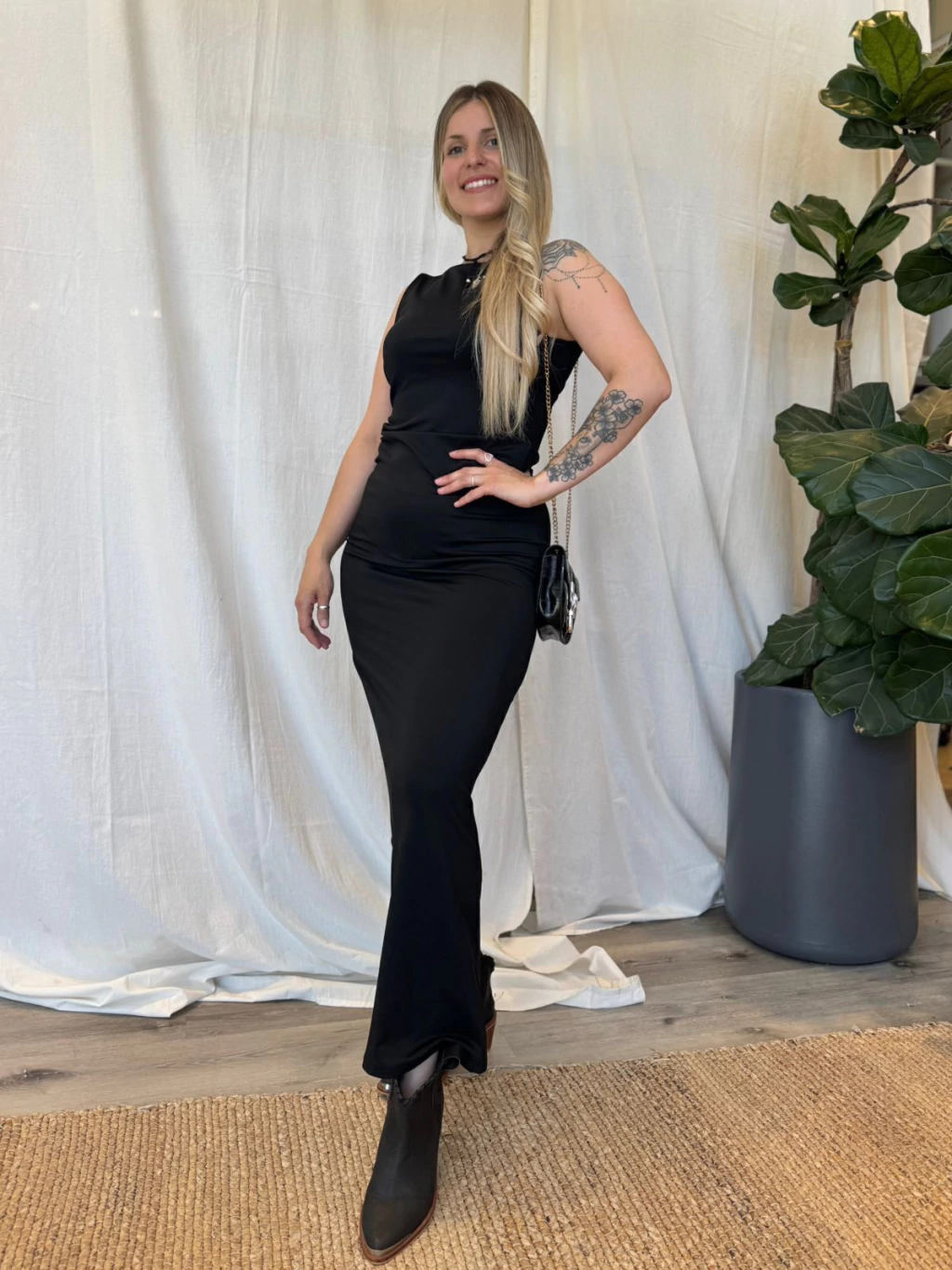 El Vestido Largo Cuello Cerrado presenta un diseño sofisticado con un contorno de sisa de 68 cm, contorno de cadera de 82 cm y un largo imponente de 137 cm. Ideal para quienes buscan un look clásico y refinado.